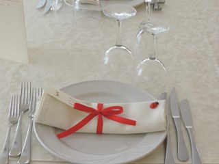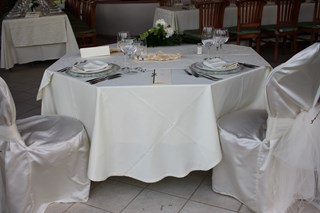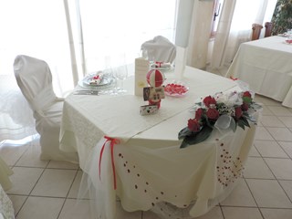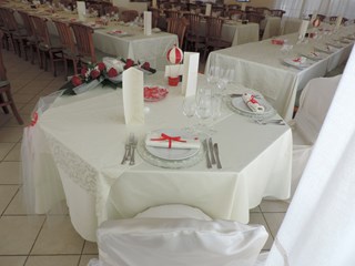 L'ELEGANTE ALLESTIMENTO E' STATO REALIZZATO CON LE TOVAGLIE DI RASO